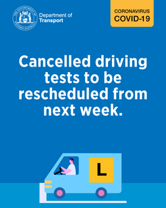 As of Monday 18 May, we will start practical driving assessments for candidates who had their test cancelled due to COVID-19.